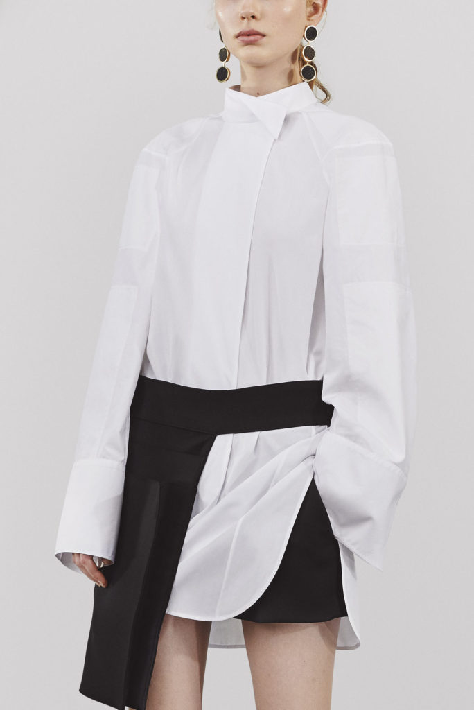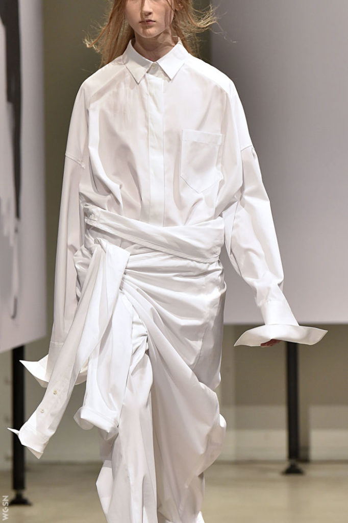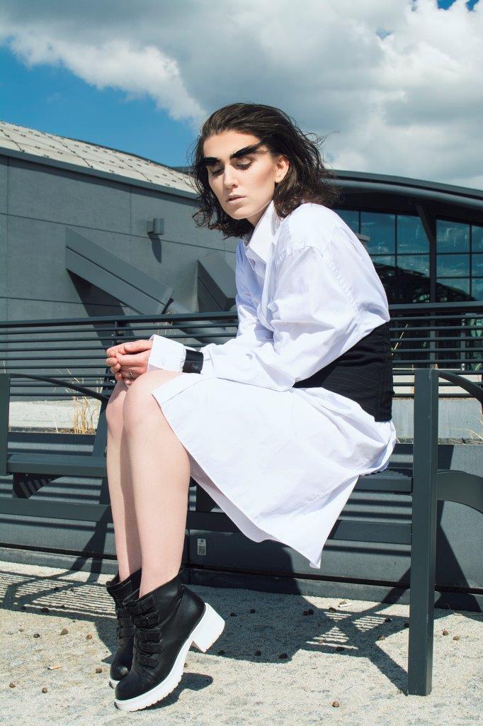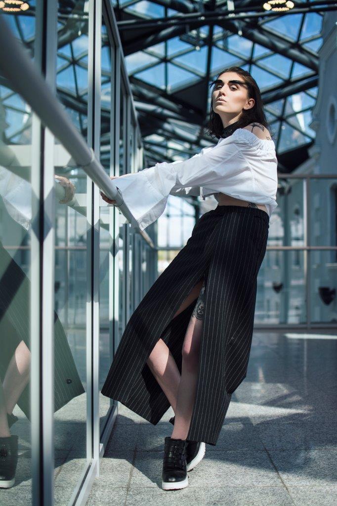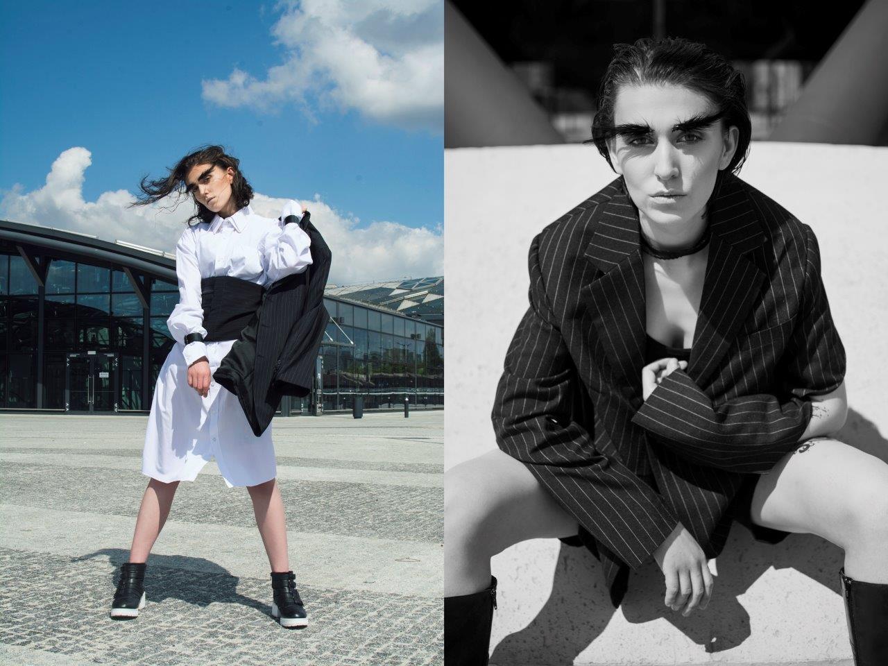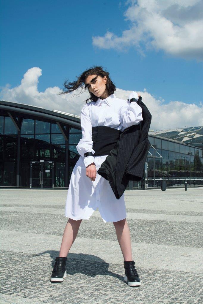 Oglądamy je co roku w kolejnych odsłonach. Zmieniają się ich krój, detale i stylizacje i ciągle mają swoje ważne miejsce w kolekcjach. Wracają rokrocznie w rozmaitych wariantach od klasycznej małej, dopasowanej bluzki koszulowej poprzez inspirujące stylizacje z zastosowaniem koszuli z szafy męża czy chłopaka aż po romantyczne wariacje rodem z Trzech Muszkieterów pełne falban, wiązań i żabotów W tym sezonie królują koszule oversize ale w wydaniu kobiecym. Miękkie tkaniny, za długie rękawy z falbaną czy efektowne wiązanie pod szyją. Bardzo modne są rozmaite hafty ale te najciekawsze to hafty spersonalizowane, które dają możliwość zaprezentowania własnej wizji. Jak podaje WGSN Instock data, który posiada dane o sprzedaży na światowych rynkach wolumen obrotu koszulami znacząco wzrósł a to oznacza, że ulica pokochała koszule od nowa. W kolekcji Victorii Beckham ten wzrost sprzedaży koszul to 35,7% miesiąc do miesiąca. I tu chciałabym pochwalić się koszulami zaprojektowanymi ostatnio przez naszą stylistkę Katarzynę Pałcik, ciekawie wystylizowanymi na potrzeby sesji fotograficznej „Modern craven” i pięknie sfotografowanymi przez Karolinę Stasiak na tle nowego dworca Łódź Fabryczna. Nie są to stricte służbowe stylizacje ale koszule bardzo ciekawe, świetnie wpisujące się w trendy. Sami zobaczcie i oceńcie. Modelka Anna Janaszek.